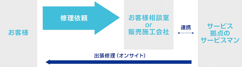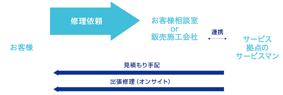 ・当社銀行口座に入金が確認でき次第、サービスマンが訪問して修理対応を実施させていただきます。