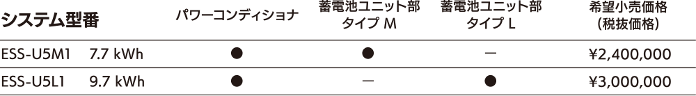| 蓄電池ユニット | タイプ M | タイプ L | |
