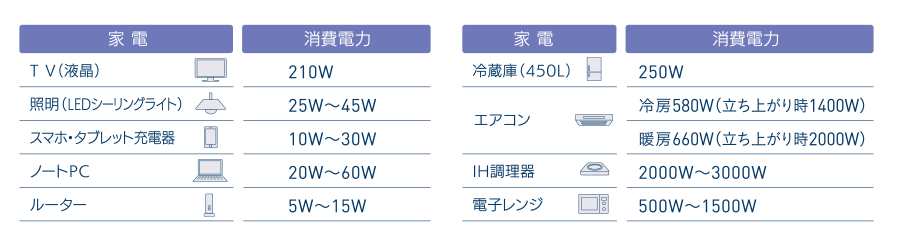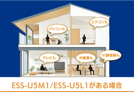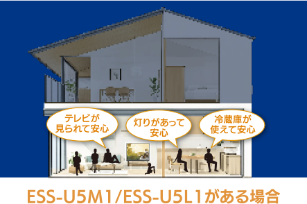 4.0kVA(ESS-U5M1)、5.9kVA(ESS-U5L1)の範囲内で、災害時に使用したい家電を選んで使用することが可能です。