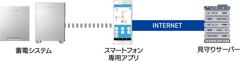 お客様が安心して蓄電システムをご利用いただけるように蓄電システムを見守るサービスです。インターネット経由で蓄電システムの運転状態を無償でモニターしており、機器のソフトウェア更新や今後の新しいサービスをネットワーク経由で提供できます。